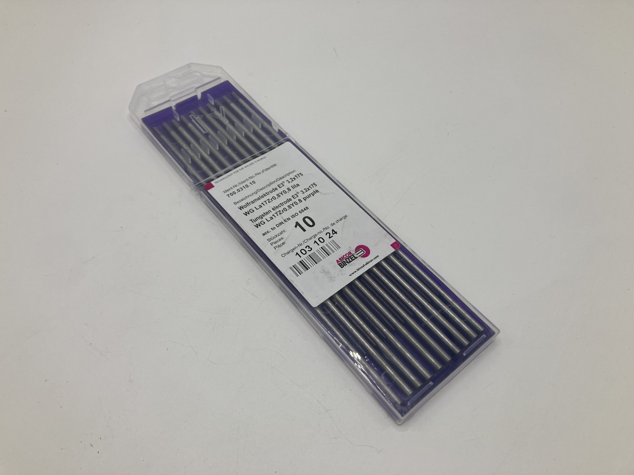 De paarse E3 wolfraamelektrode 3,2 mm van Binzel is een hoogwaardige en veelzijdige TIG elektrode
